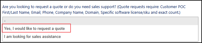 To provide an accurate quote as quickly as possible, please complete all the required fields. The more specific you are about the product editions and quantity of licenses, the quicker we can complete a quote and get it to you for approval.