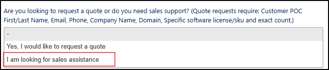 Getting Sales Support and Quote Requests for Software
